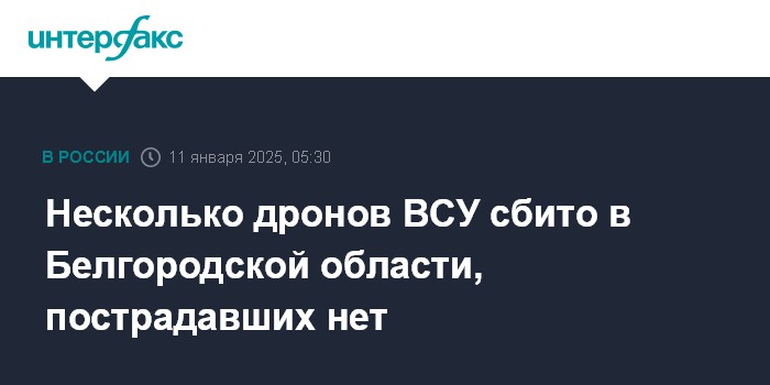 Москва. 11 января. INTERFAX.RU - Несколько украинских беспилотников самолетного типа сбито над Белгородским районом, сообщил губернатор Белгородской области Вячеслав Гладков.
