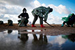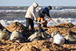 Кроме того министр осмотрел площадку временного хранения загрязненного грунта, вывезенного с побережья. Сюда свозится песок для его дальнейшей утилизации.