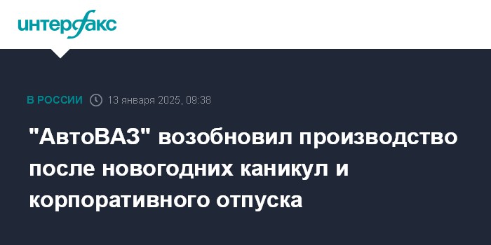 Москва. 13 января. INTERFAX.RU - АО "АвтоВАЗ" в понедельник возобновило производство, приостановленное с 29 декабря 2024 года по 12 января 2025 года включительно в связи с новогодними каникулами и корпоративным отпуском, сообщила пресс-служба компании.