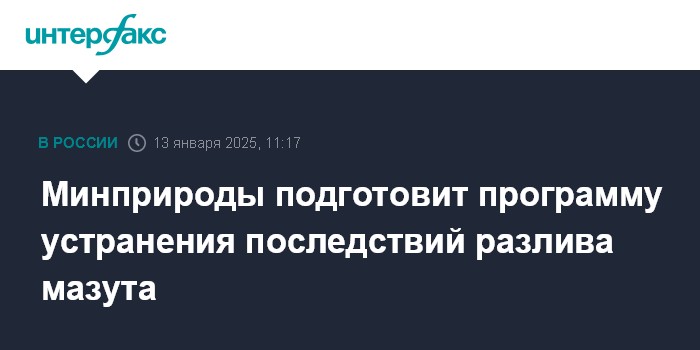 Москва. 13 января. INTERFAX.RU - Минприроды в ближайшее время разработает программу устранения последствий разлива мазута в Керченском проливе с учетом предстоящего повышения температуры воды, заявил на совещании с вице-премьерами премьер-министр Михаил Мишустин.
