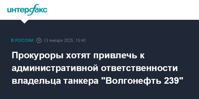 Москва. 13 января. INTERFAX.RU - Новороссийская транспортная прокуратура подала в Арбитражный суд Краснодарского края три заявления о привлечении к административной ответственности ЗАО "Волгатранснефть" - владельца танкера "Волгонефть 239", потерпевшего крушение в Керченском проливе в декабре 2024 года.