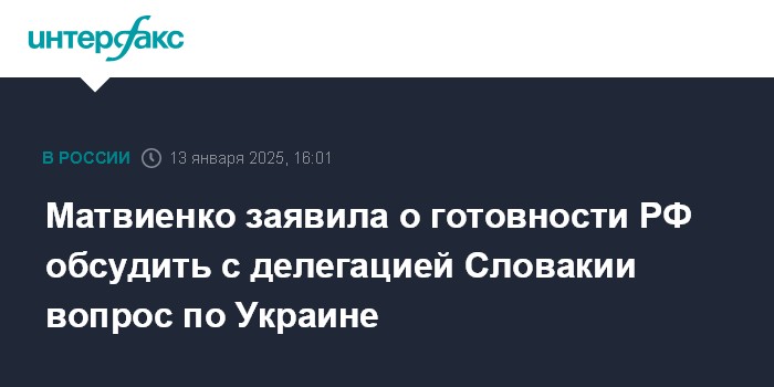 Москва. 13 января. INTERFAX.RU - Россия может обсудить с приехавшей парламентской делегацией Словакии вопрос по Украине, если гости захотят его поднять, заявила председатель Совета Федерации Валентина Матвиенко.