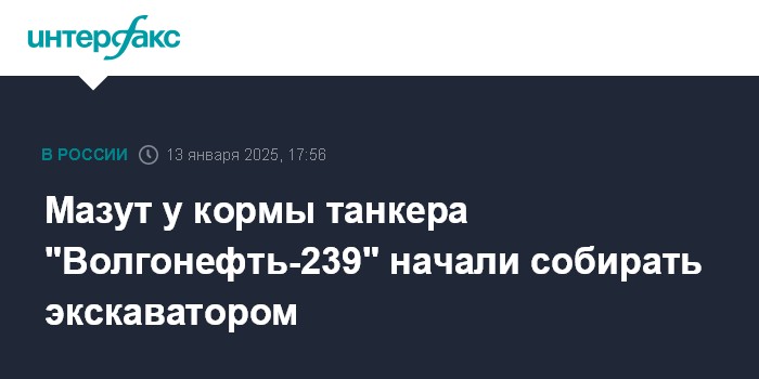 Москва. 13 января. INTERFAX.RU - Экскаваторы и самосвалы приступили к работам по сбору мазута у севшего на мель в Керченском проливе танкера "Волгонефть-239", сообщает оперштаб Краснодарского края.