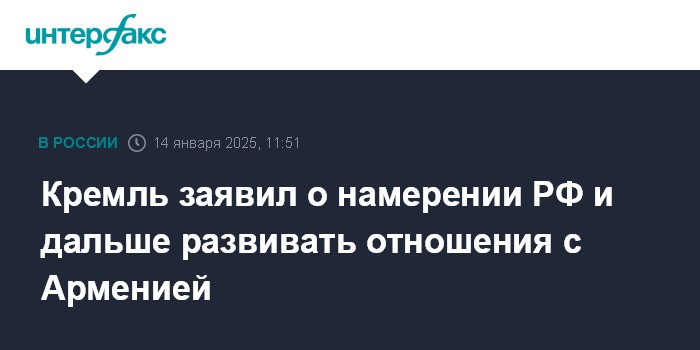 Кремль заявил о намерении РФ и дальше развивать отношения с Арменией