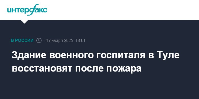 Москва. 14 января. INTERFAX.RU - Здание военного госпиталя в Туле, где накануне произошел крупный пожар, будет восстановлено, сообщил губернатор региона Дмитрий Миляев.