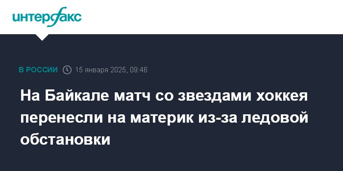 Москва. 15 января. INTERFAX.RU - В Иркутской области перенесли хоккейный матч с участием звезд мирового спорта, традиционно проводившийся на льду озера Байкал, сообщает пресс-служба регионального правительства.