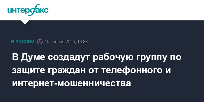 Москва. 15 января. INTERFAX.RU - Председатель Госдумы Вячеслав Володин на заседании в среду поручил создать межфракционную рабочую группу по противодействию мошенникам, обманывающим граждан по телефону или с использованием интернета.