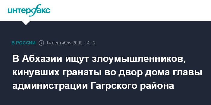 Москва. 14 сентября. INTERFAX.RU – В Абхазии возбудили уголовное дело в связи со взрывами боевых гранат во дворе дома главы администрации Гагрского района Астамура Кецба.