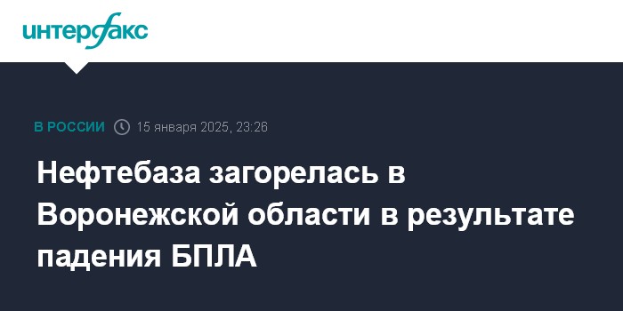 Москва. 15 января. INTERFAX.RU - Губернатор Воронежской области Александр Гусев сообщил о возгорании на нефтебазе после падения беспилотников.