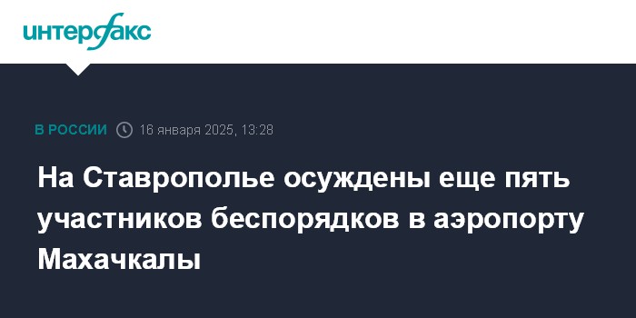 Москва. 16 января. INTERFAX.RU - В Ставропольском крае Советский районный суд назначил реальные сроки пяти жителям Дагестана по делу о беспорядках в аэропорту Махачкалы в октябре 2023 года, сообщила прокуратура региона. Они получили от семи до восьми лет колонии общего режима.