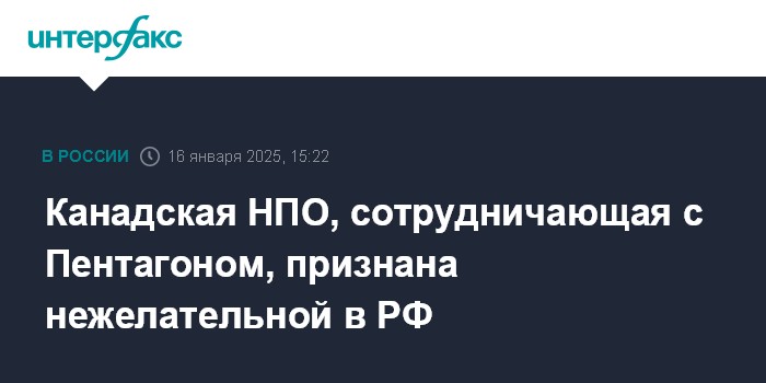 Канадская НПО, сотрудничающая с Пентагоном, признана нежелательной в РФ