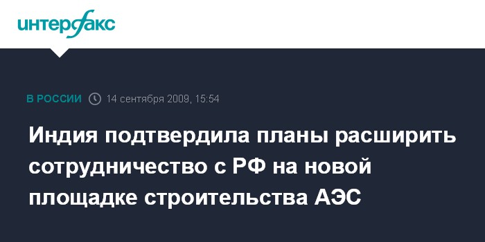 Индия подтвердила планы расширить сотрудничество с РФ на новой площадке строительства АЭС