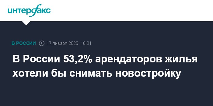 В России 53,2% арендаторов жилья хотели бы снимать новостройку