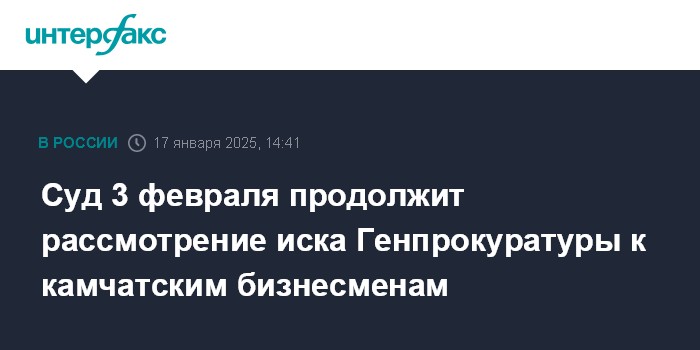 Суд 3 февраля продолжит рассмотрение иска Генпрокуратуры к камчатским бизнесменам