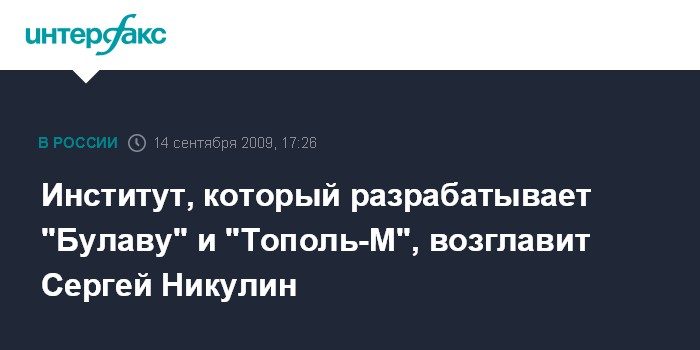 Институт, который разрабатывает "Булаву" и "Тополь-М", возглавит Сергей Никулин