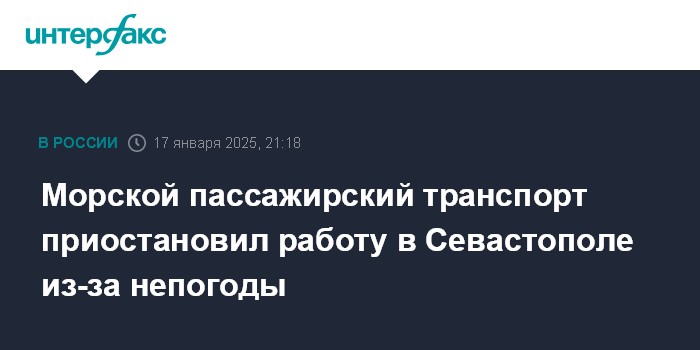 Москва. 17 января. INTERFAX.RU - В Севастополе приостановили движение морского пассажирского транспорта из-за непогоды, сообщает дирекция по развитию дорожно-транспортной инфраструктуры города в своем телеграм-канале в пятницу вечером.