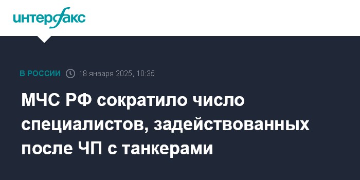 Москва. 18 января. INTERFAX.RU - МЧС РФ почти вдвое уменьшило число специалистов, задействованных в ликвидации последствий крушения танкеров с мазутом "Волгонефть 212" и "Волгонефть 239" в Керченском проливе.