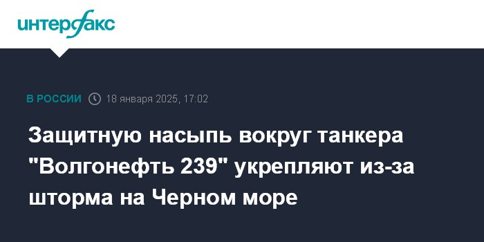 Защитную насыпь вокруг танкера "Волгонефть 239" укрепляют из-за шторма на Черном море