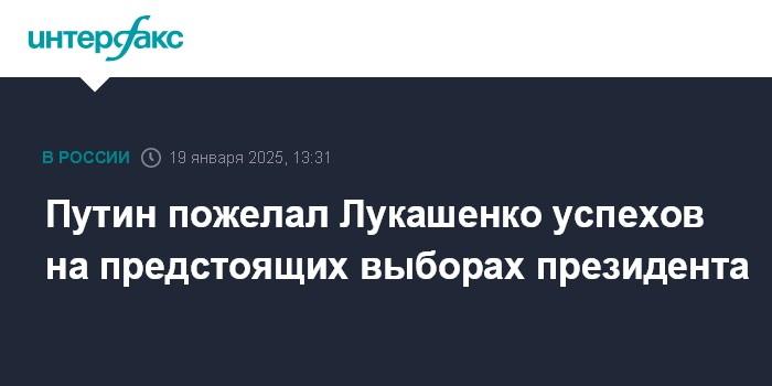 Путин также пожелал Лукашенко успехов на предстоящих 26 января президентских выборах.
