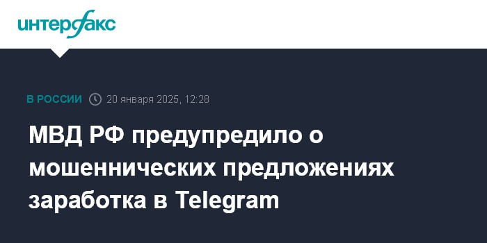 МВД РФ предупредило о мошеннических предложениях заработка в Telegram