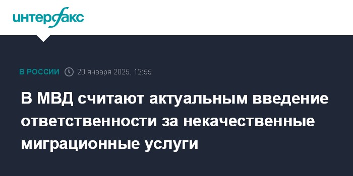Москва. 20 января. INTERFAX.RU - В МВД считают актуальным введение ответственности за некачественные миграционные услуги, ежегодно ведомство предоставляет 65 миллионов госуслуг в сфере миграции, сообщил в Госдуме замминистра внутренних дел Игорь Зубов.