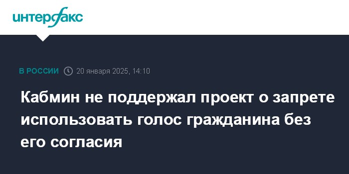 Проект закона № 718834-8 предлагает дополнить часть первую Гражданского кодекса РФ новой статьей 152.3, устанавливающей охрану голоса как объекта личных неимущественных прав гражданина по аналогии с изображением гражданина, "в том числе в случаях имитации голоса или путем синтеза речи в режиме реального времени", говорится в пояснительной записке.
