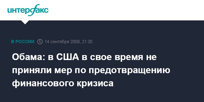 Обама: в США в свое время не приняли мер по предотвращению финансового кризиса