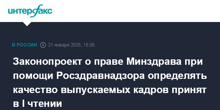 Законопроект о праве Минздрава при помощи Росздравнадзора определять качество выпускаемых кадров принят в I чтении