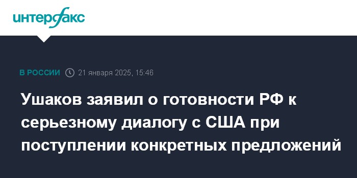 Ушаков заявил о готовности РФ к серьезному диалогу с США при поступлении конкретных предложений