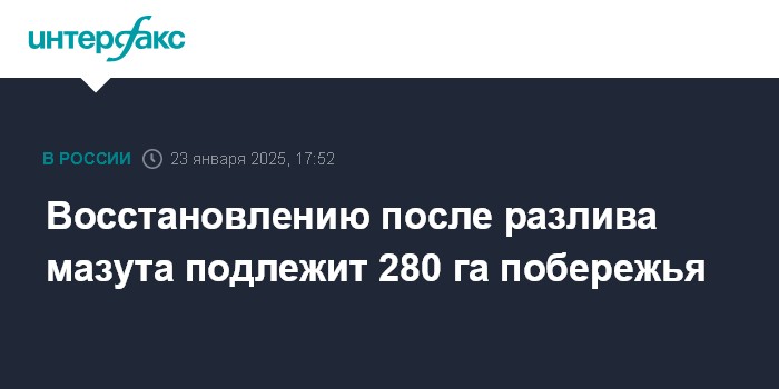 Москва. 23 января. INTERFAX.RU - Восстановлению после разлива мазута из-за крушения танкеров в Керченском проливе, по предварительным данным, подлежит 280 га побережья, сообщил министр природных ресурсов и экологии Александр Козлов.