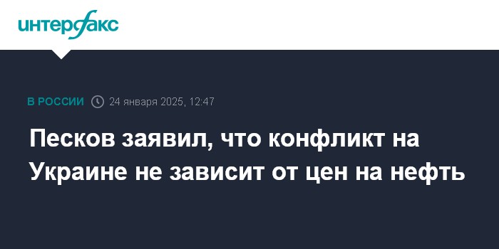 Москва. 24 января. INTERFAX.RU - Конфликт на Украине не зависит от мировых цен на нефть, заявил пресс-секретарь президента РФ Дмитрий Песков.