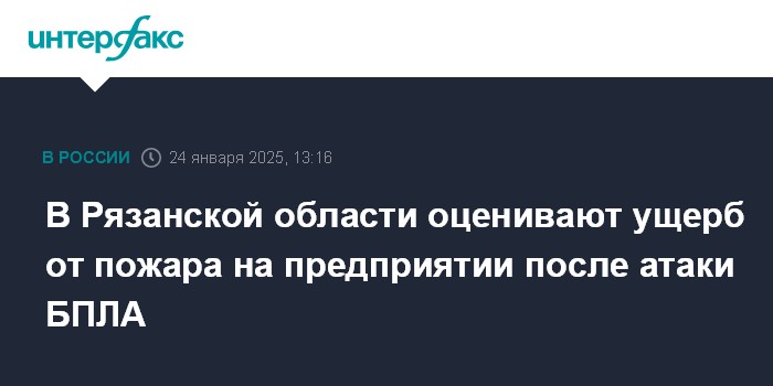 Москва. 24 января. INTERFAX.RU - В Рязанской области оценивают ущерб, причиненный предприятию, которое загорелось ночью после атаки беспилотников, сообщил губернатор региона Павел Малков.