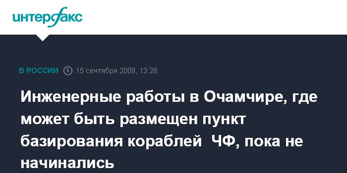 Москва. 15 сентября. INTERFAX.RU - Россия пока не приступала к созданию пункта базирования кораблей Черноморского флота в абхазском порту Очамчира, сообщил журналистам во вторник источник в главном штабе ВМФ РФ.