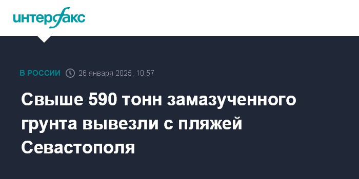 Москва. 26 января. INTERFAX.RU - За сутки в Севастополе вывезено еще три тонны загрязненного мазутом грунта, сообщил губернатор города Михаил Развожаев в воскресенье.