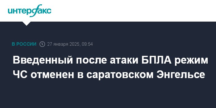 "Отменить с 10.00 (9:00 по Москве - ИФ) 27 января 2025 года режим "Чрезвычайная ситуация". (...) Ввести с 10.00 27 января 2025 года для органов управления и сил Энгельсского муниципального звена Саратовской территориальной подсистемы единой государственной системы предупреждения и ликвидации чрезвычайных ситуаций режим функционирования "Повышенная готовность", - говорится в опубликованном на сайте постановлении главы муниципального района Михаила Исаева.