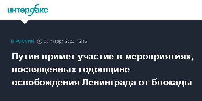 Путин примет участие в мероприятиях, посвященных годовщине освобождения Ленинграда от блокады