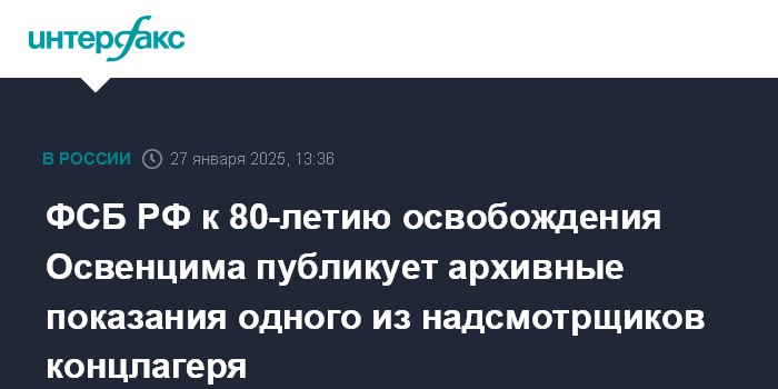 ФСБ РФ к 80-летию освобождения Освенцима публикует архивные показания одного из надсмотрщиков концлагеря