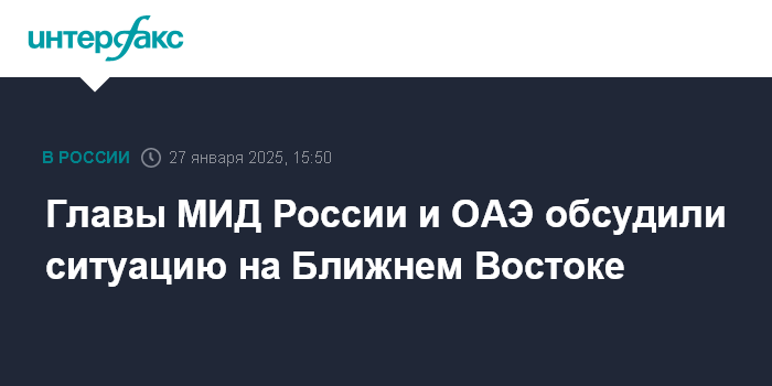 Главы МИД России и ОАЭ обсудили ситуацию на Ближнем Востоке