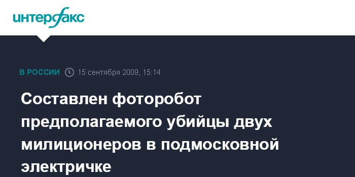 Москва. 15 сентября. INTERFAX.RU - Сотрудники правоохранительных органов составили фоторобот мужчины, который подозревается в убийстве двух работников транспортной милиции, расстрелянных в ночь на вторник в подмосковном электропоезде Москва-Серпухов.