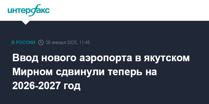 Москва. 28 января. INTERFAX.RU - Ввод в эксплуатацию нового аэропортового комплекса в Мирном (Якутия) намечен в 2026-2027 годах, сообщает пресс-служба правительства республики.