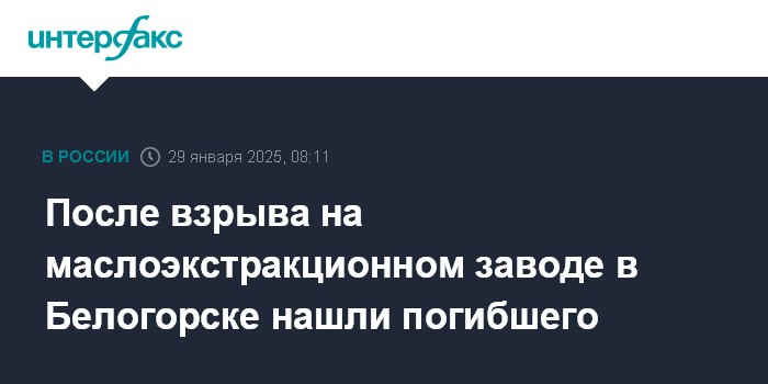 Взрыв на седьмом этаже завода произошел днем 28 января. "Установлено, что 28 января 2025 года в помещении склада пищевого шрота маслоэкстракционного завода, расположенного в городе Белогорске по улице Производственная, произошел хлопок силосной установки, в результате которого погиб один из рабочих завода", - сообщает телеграм-канал управления СКР по Амурской области.