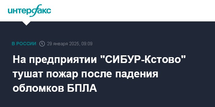"В результате отражения атаки БПЛА на территории предприятия "СИБУР-Кстово" упали обломки, что вызвало возгорание. В настоящее время на месте работают пожарные МЧС России. Пострадавших нет, персонал перемещен на безопасное расстояние", - говорится в сообщении.