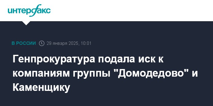 Москва. 29 января. INTERFAX.RU - Генеральная прокуратура направила в Арбитражный суд Московской области иск к компаниям группы "Домодедово" и участникам схемы владения аэропортом, включая его бенефициара Дмитрия Каменщика, сказано в материалах судебной картотеки.