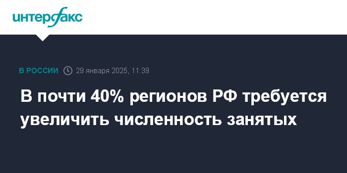 В почти 40% регионов РФ требуется увеличить численность занятых