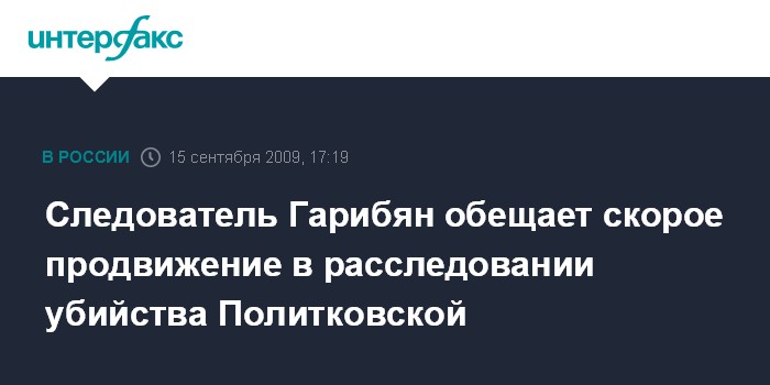 Москва. 15 сентября. INTERFAX.RU - В расследовании дела об убийстве журналистки Анны Политковской в скором времени появятся хорошие результаты, пообещал руководитель следствия по этому громкому делу, следователь Главного следственного управления СКП РФ Петрос Гарибян.