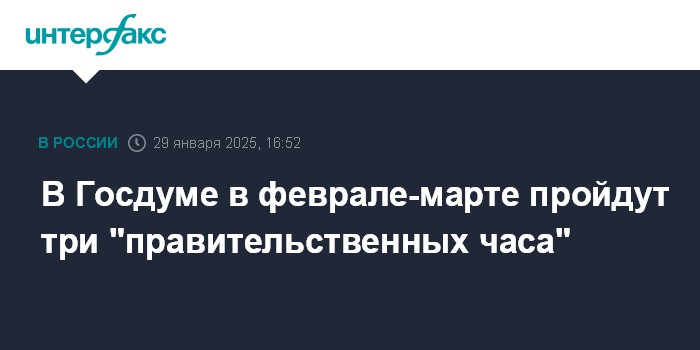 В Госдуме в феврале-марте пройдут три "правительственных часа"