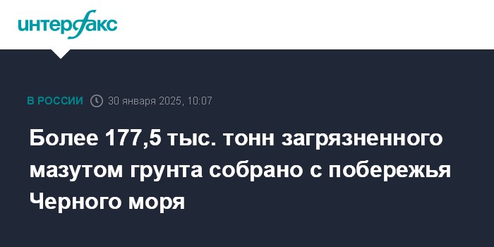 Более 177,5 тыс. тонн загрязненного мазутом грунта собрано с побережья Черного моря