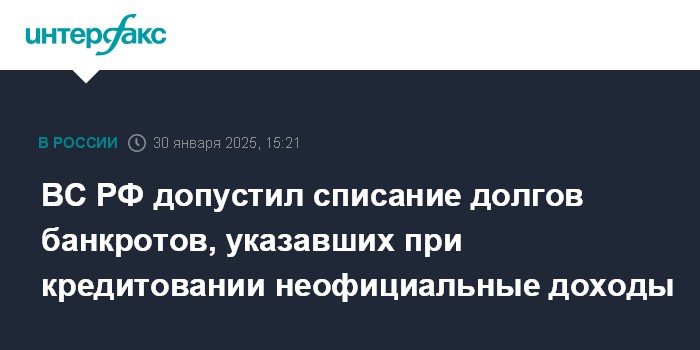 ВС РФ допустил списание долгов банкротов, указавших при кредитовании неофициальные доходы