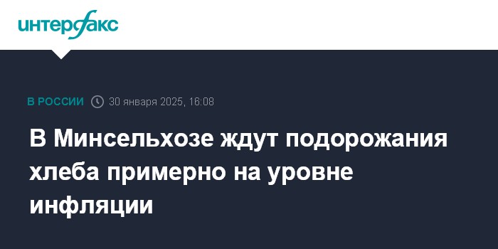 Как считает Титов, "тот рост цен на зерновую группу, который есть на сегодняшний день, в принципе в цене (хлеба - ИФ) уже отыгран". "Поэтому дальше мы ориентируемся на то, что рост цен на хлеб будет плюс-минус соответствовать общей динамике инфляции", - сказал он.