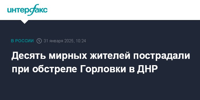 Москва. 31 января. INTERFAX.RU - Десять мирных жителей пострадали в результате обстрела Горловки в Донецкой народной республике (ДНР), сообщил мэр города Иван Приходько.